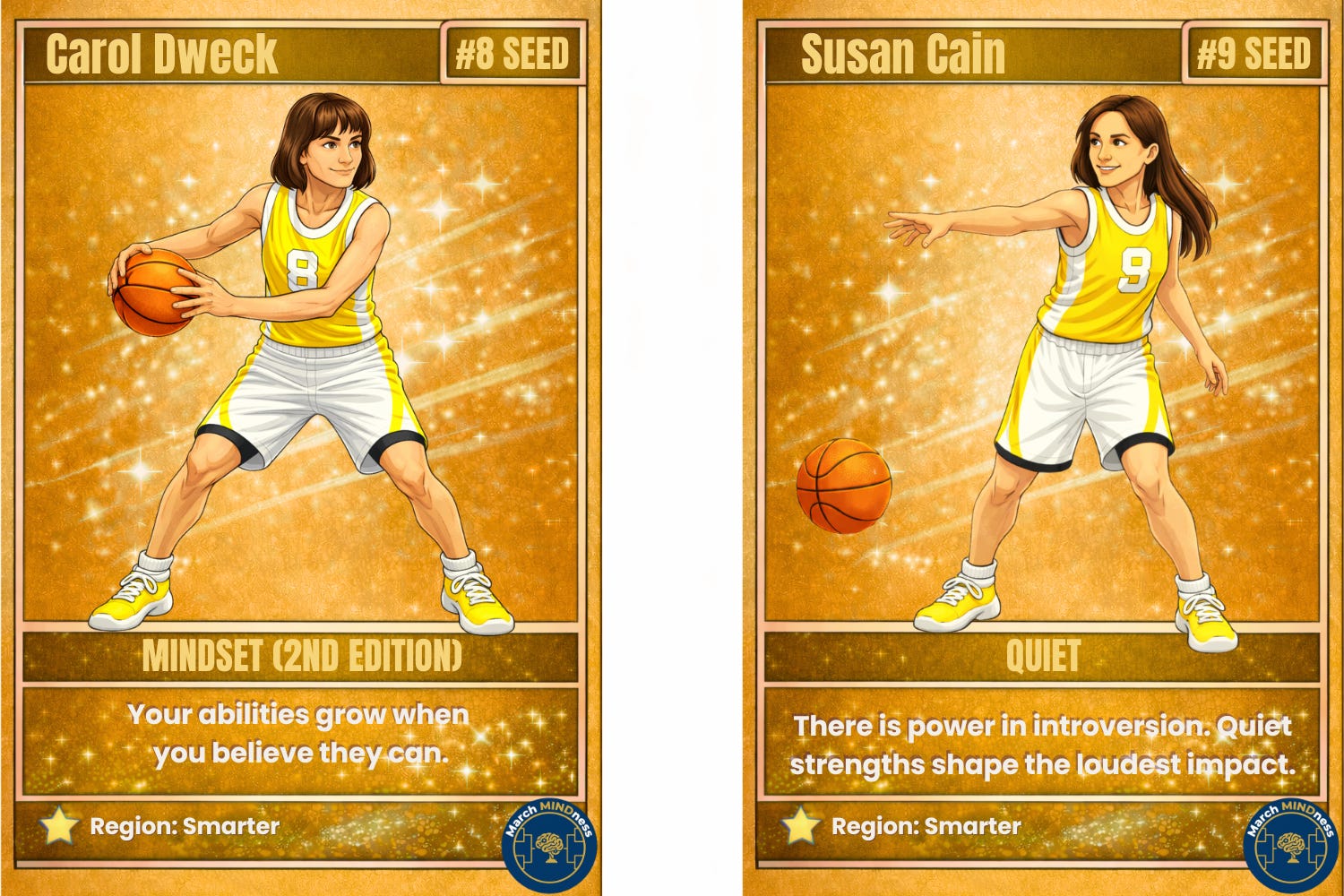 This question sits at the center of modern self-help discussions: change yourself vs accept yourself. And it’s at the center of the battle between the Smarter Region’s 8th seed: Carol Dweck and 9th seed: Susan Cain.