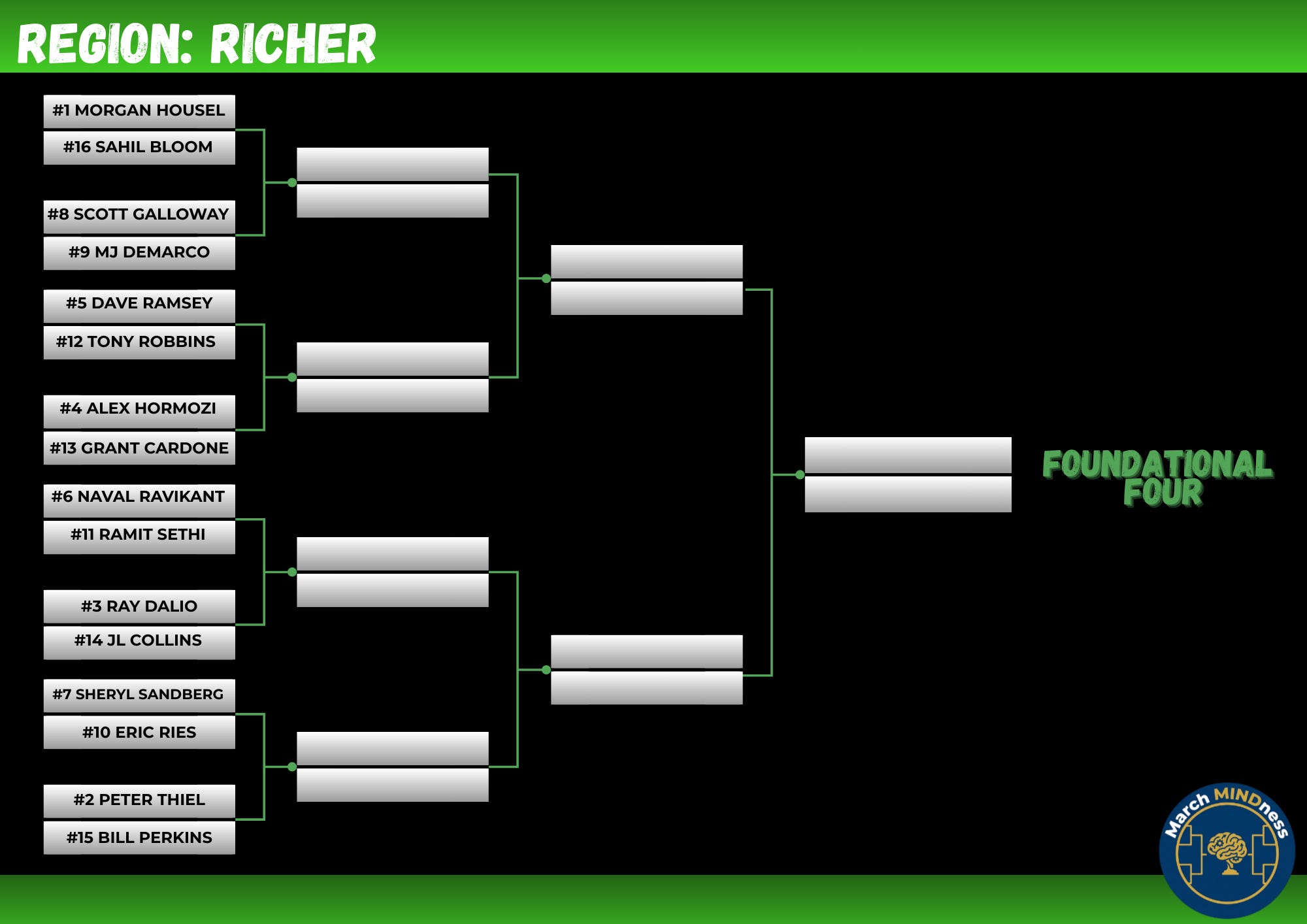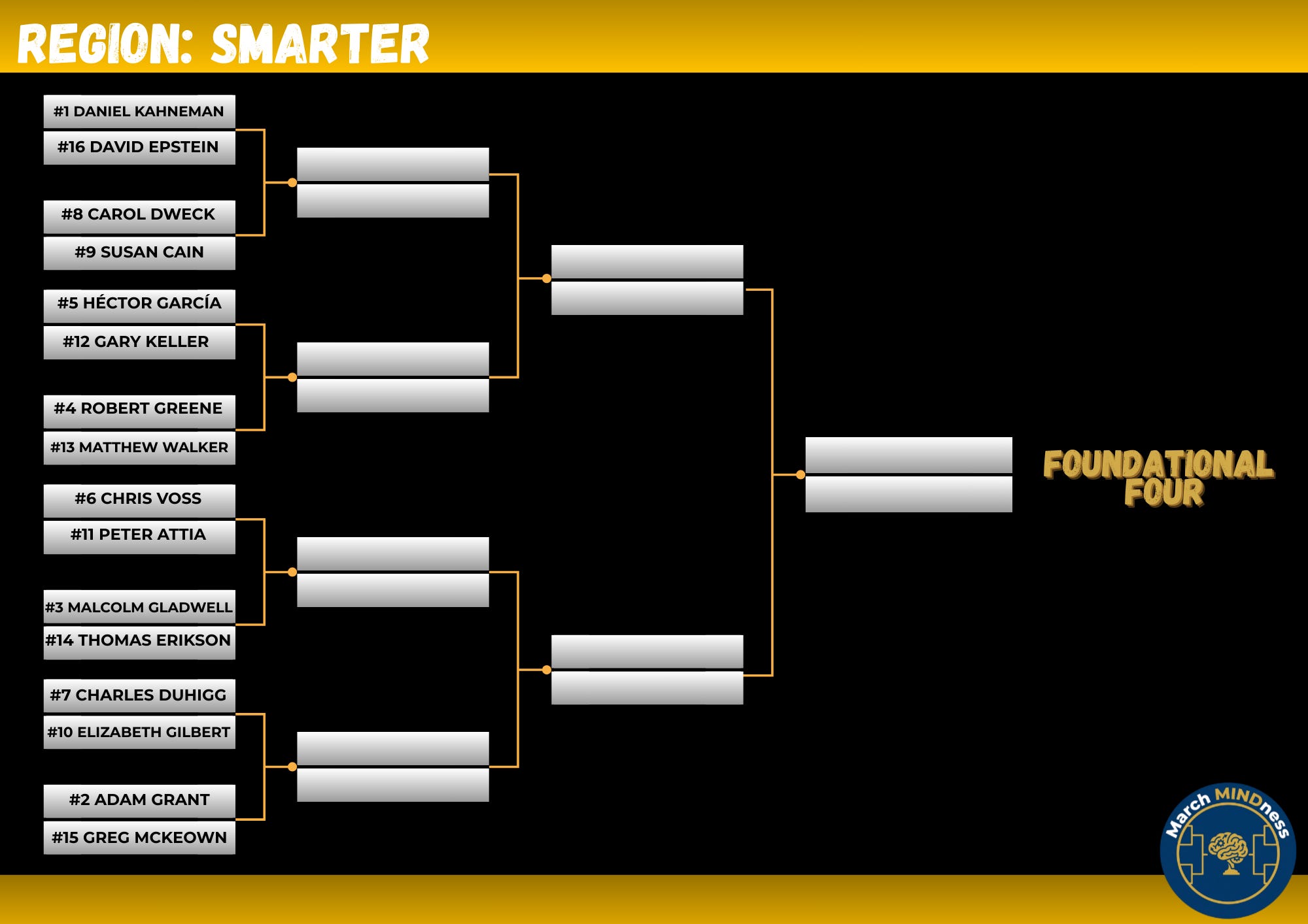 For seeding, I put Daniel Kahneman in as #1. He’s the father of behavioral economics. He passed away in 2024 (RIP), but his influence is monumental.