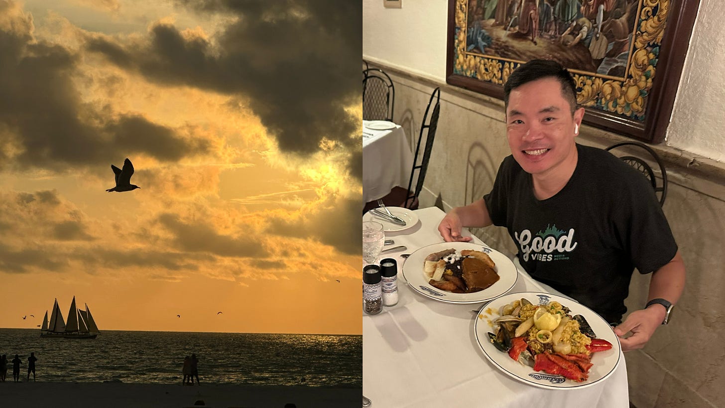 I did it! Was it smooth? Nah. But I did it. And that’s the first step. Let me show you my reward — a sunset at Clearwater Beach, followed by a huge meal at the oldest Spanish restaurant in America: The Columbia Restaurant.