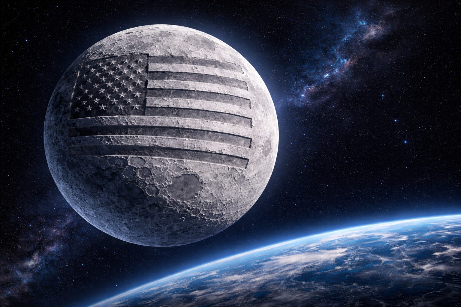 You can even carve out a giant American flag on the face of the moon, which will demonstrate American sovereignty and might to the world on a nightly basis.